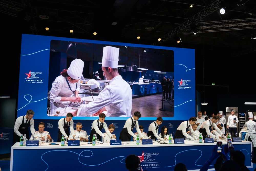 La finale ha visto un grande social table che ha riunito i 40 protagonisti della competizione, un video mapping continuo che proseguiva negli schermi verticali trasparenti e una cena firmata da Pía León e Jessica Rosval, insieme al vincitore della scorsa edizione Nelson Freitas. A chiudere, un after party con un omaggio iconico: i tortellini alla crema di parmigiano di Massimo Bottura.