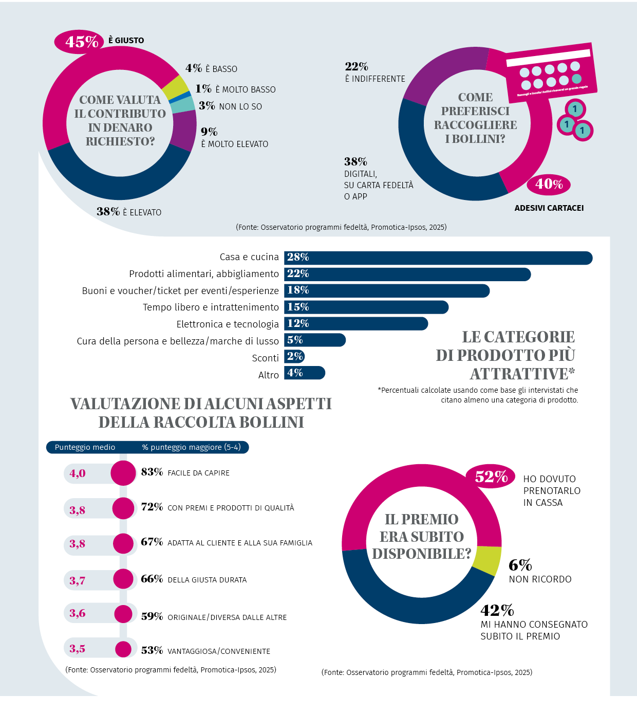 - un terzo dei clienti non è pienamente soddisfatto delle raccolte bollini;