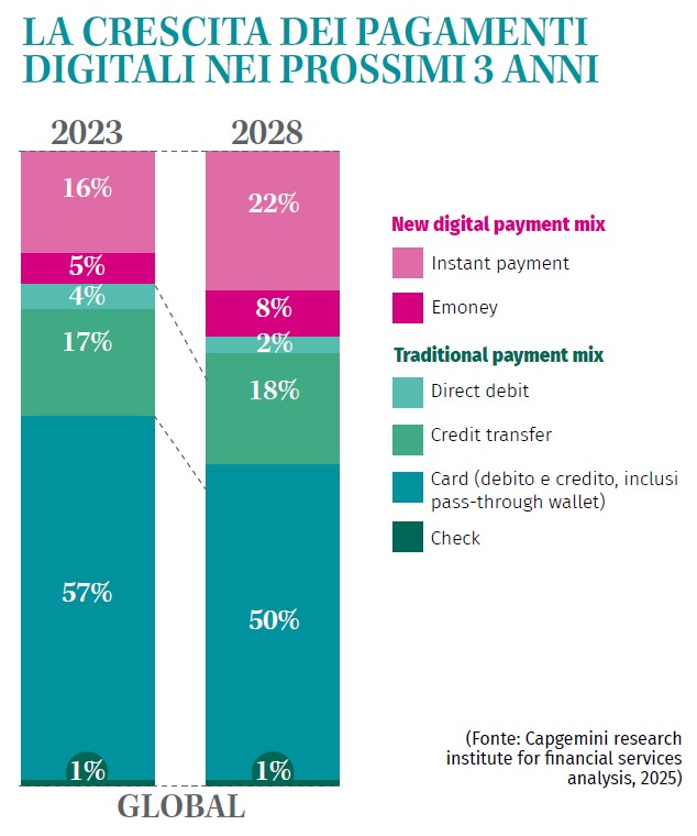 Vi è poi un altro ordine di ragioni per cui è opportuno che i loyalty manager seguano attentamente l’evoluzione del mondo dei pagamenti: le novità in tale ambito finiscono sempre per essere adottate da qualche innovatore nel mondo della loyalty con finalità di differenziazione. È successo con i wallet, con la tokenization e con il buy now pay later, e presto accadrà di nuovo. Se osserviamo il grafico, vediamo che nel giro di 3 anni il mondo degli strumenti di pagamento assisterà a una grande crescita dei nuovi strumenti digitali, in particolare gli instant payment e i wallet (che passeranno dal 20% al 30% del volume totale dei pagamenti mondiali). Sarà opportuno quindi monitorare cosa fanno gli operatori innovativi in questo ambito. Rimanendo nel nostro paese sarà interessante studiare cosa fanno Revolut e Satispay – che peraltro hanno entrambi lanciato un proprio programma fedeltà.