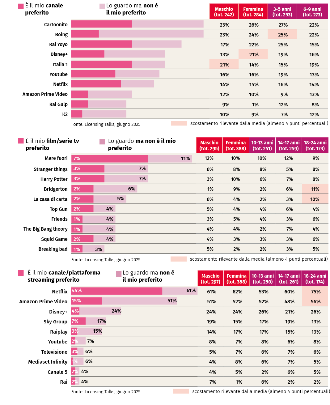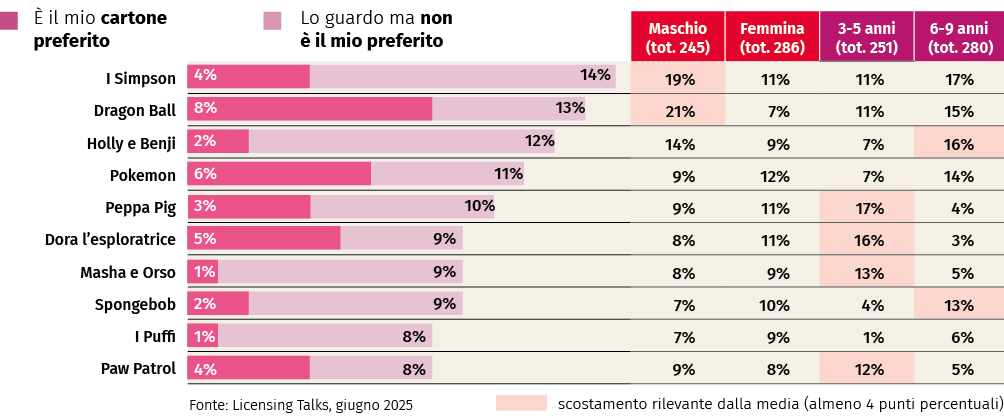 L’osservatorio “Licensing talks” misura due volte all’anno le property più rilevanti, testando i character rispetto alle fasce d’età d’interesse: in questo modo ciascun personaggio è testato sul proprio specifico target di riferimento. La ricerca, condotta da Hubits, l’hub di ricerca nato all’interno di Mondadori Media grazie a una partnership con Licensing Italia, rappresentante per l’Italia di Licensing International, è realizzata sul panel proprietario Mlab (Mondadori Lab), che conta oltre 35.000 iscritti.