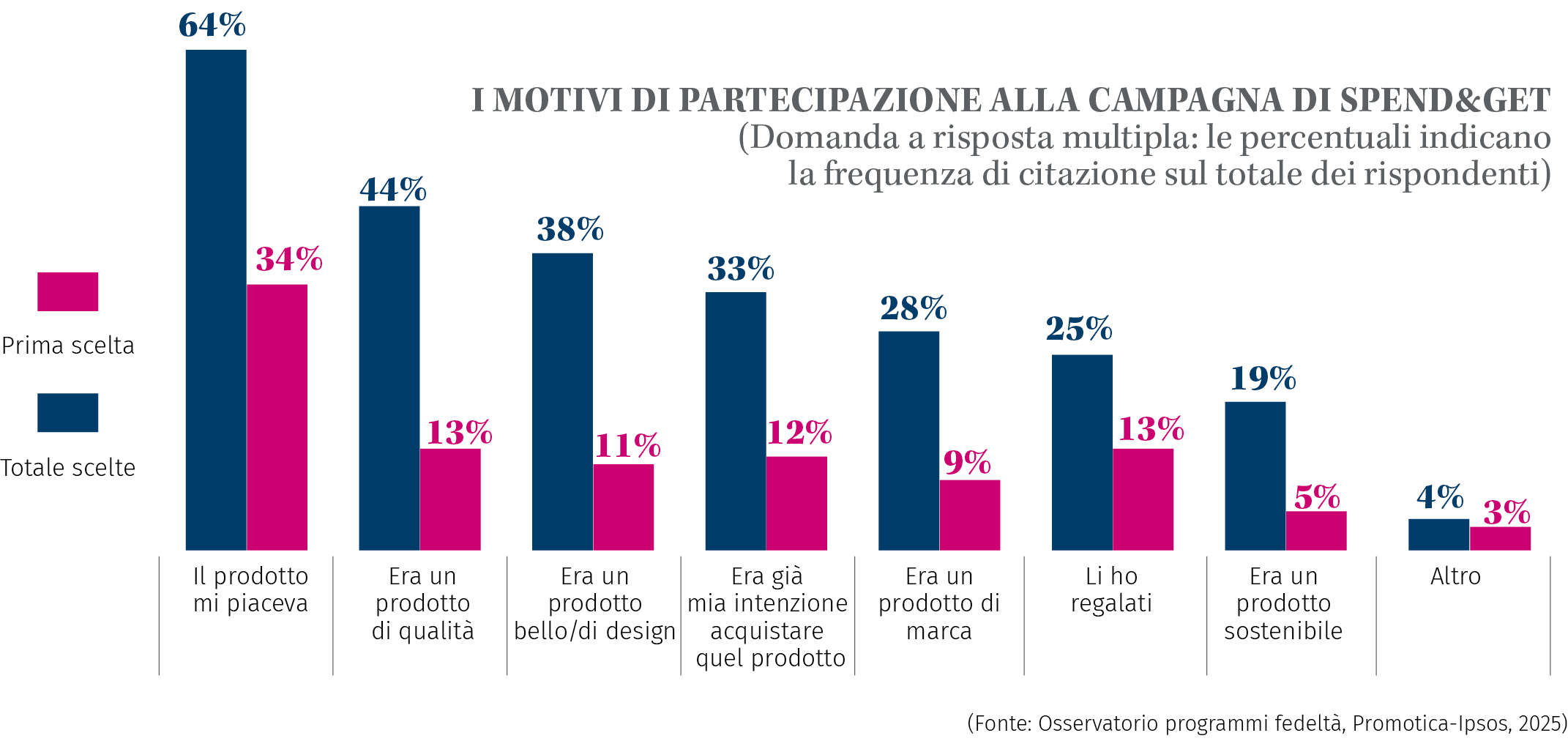 Le campagne spend & get si confermano uno strumento efficace di fidelizzazione e promozione: quasi 7 consumatori su 10 dichiarano di apprezzarle molto o moltissimo. L’utilità del premio e la chiarezza delle meccaniche di partecipazione risultano fattori decisivi per decretarne il successo, secondo i dati raccolti dall’Osservatorio Programmi Fedeltà 2025 realizzato da Promotica in collaborazione con Ipsos (su un campione rappresentativo di 1.500 persone, in tutto il territorio italiano).